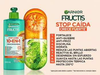Nuestra nueva crema 10 en 1 Crece Fuerte 300 ml te da los beneficios que necesitas en un solo producto. Su fórmula con naranja sanguínea, vitamina C° y taurina deja tu cabello 98% más fuerte y reduce la caída.