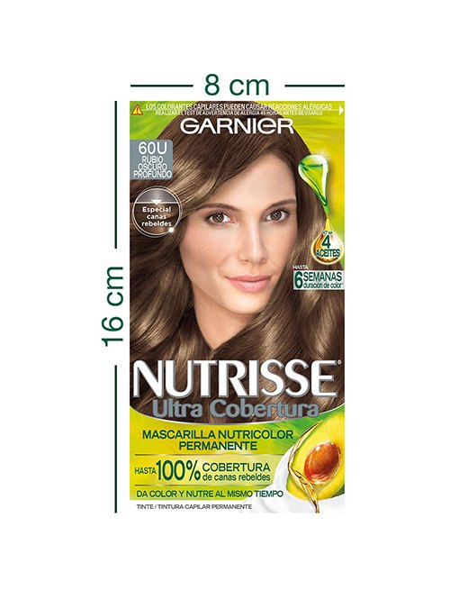 Con Garnier Nutrisse Ultra Cobertura, cabello nutrido es mejor color, aún con canas rebeldes. Nutrisse Ultra Cobertura está enriquecido con todo el poder de 4 aceites (palta, grosella, oliva y uva). Su tecnología Ultra-Cobertura y su concentrado de pigmentos, dan un color profundo y con cobertura duradera. Hasta 100% cobertura de canas.