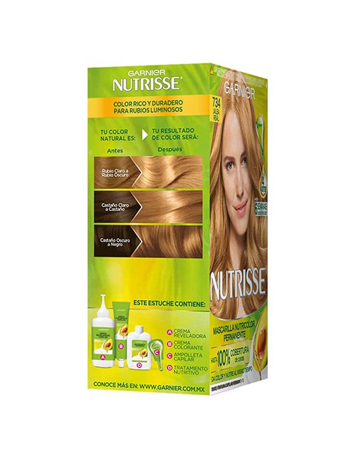 Solo el nuevo Nutrisse, ahora enriquecido con 4 aceites: palta, grosella, oliva y uva, nutre y da color al mismo tiempo. Además, su gota nutritiva y nuevo tratamiento acondicionador con Oleo Vitamina aporta una mayor nutrición. Resultado: un cabello más nutrido, suave y brillante para un mejor color.